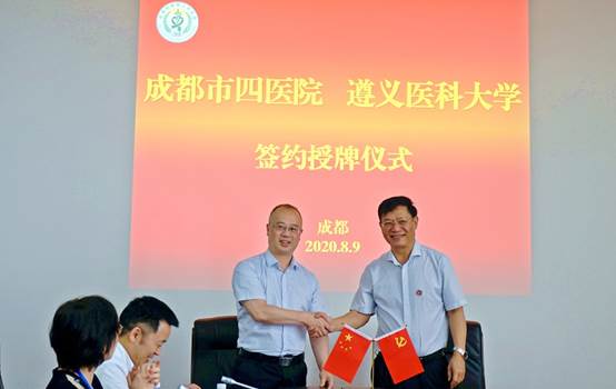 8月9日上午,在成都市第四人民医院举行了成都市第四人民医院成为学校非直属附属医院签约授牌仪式。学校党委副书记、校长刘建国,医院党委书记何满西、院长陈勇等领导班子成员,党委学校办公室、宣传部、教务处领导及医院科教部门负责人共同出席签约授牌仪式。