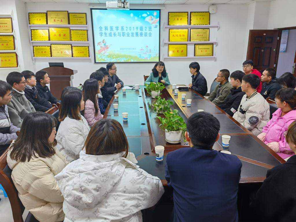 为进一步激励定向全科医学生扎根基层的责任感和荣誉感,巩固定向医学生专业思想,加强全科医学系学生思想政治教育,12月10日上午10点,遵义医科大学副校长李春鸣深入全科医学系2019级2班开展师生座谈会。本次座谈会的主题是“学生成长与职业发展”,全科医学系正处级组织员、教务处副处长邵珠建,全科医学系2019级辅导员陈圆圆及2019级2班同学参加了座谈会。