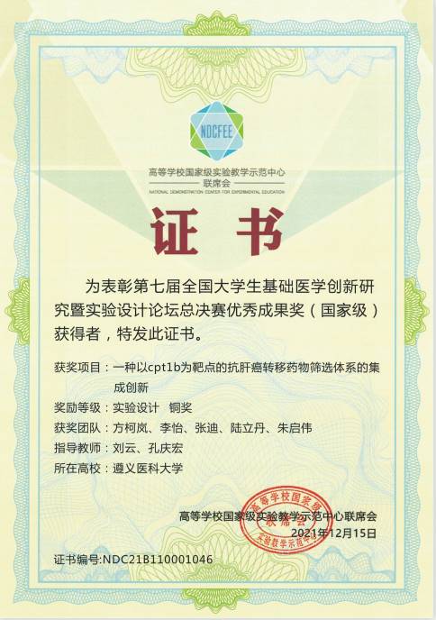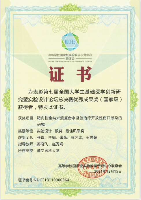 近日,由高等学校国家级实验教学示范中心联席会基础医学组主办、空军军医大学承办的第七届全国大学生基础医学创新论坛暨实验设计大论坛落下帷幕。我校在本次大赛中获得全国总决赛银奖1项,铜奖2项,西部赛区二等奖3项,三等奖1项,优秀奖1项。