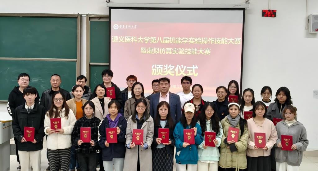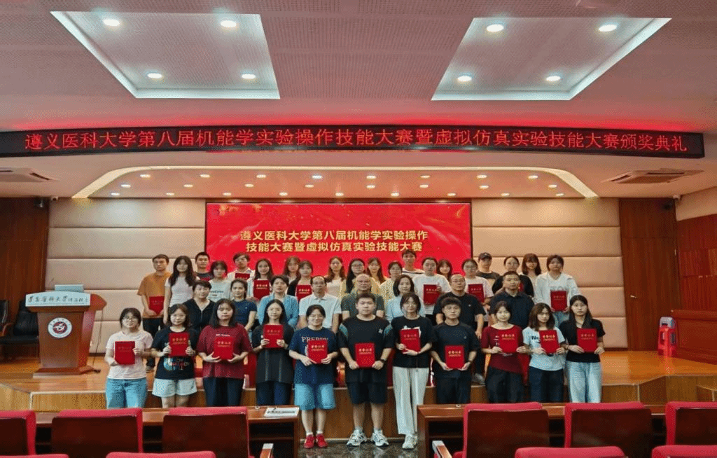 遵义医科大学第八届机能学实验操作技能大赛暨虚拟仿真实验技能大赛于2025年10月23日正式启动,本次大赛由教务处主办,珠海校区教学管理办公室、基础医学院、珠海校区基础教学部、医学国家级虚拟仿真实验教学中心承办,1050名学生(含珠海校区)踊跃参赛。历时半个多月,经过初赛、决赛环节,最终123名参赛选手脱颖而出,评选出大赛一等奖18项、二等奖44项、三等奖61项。