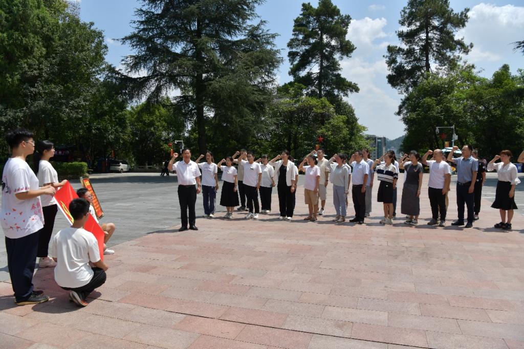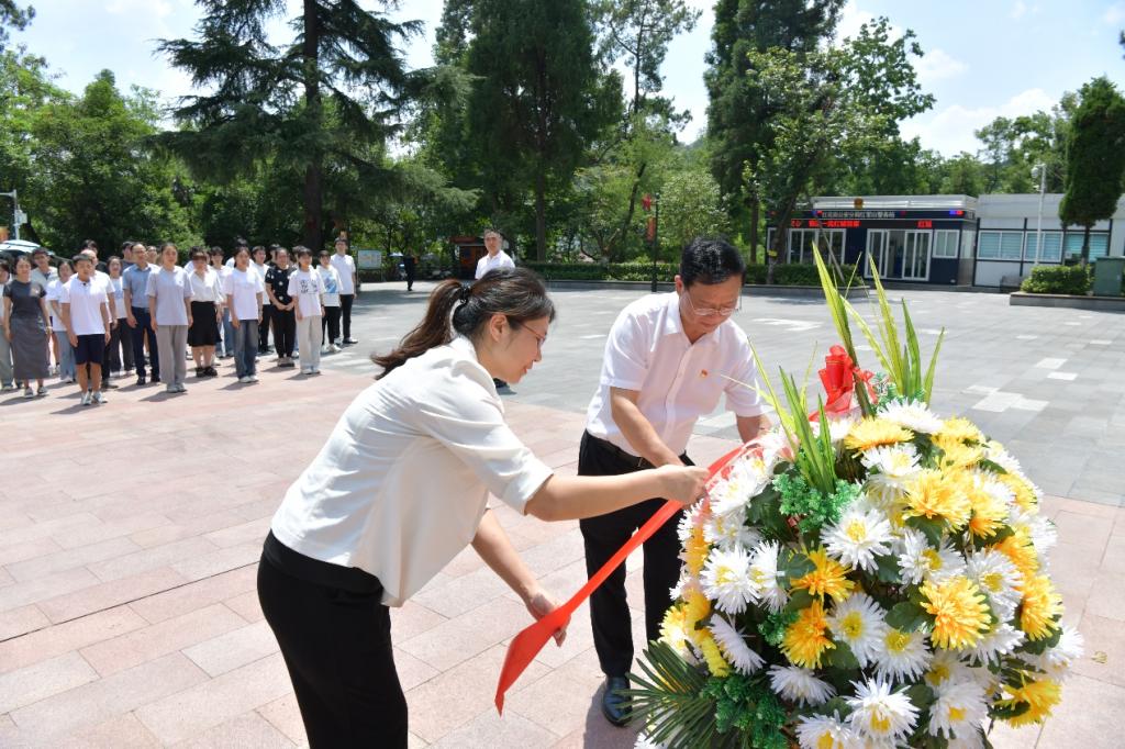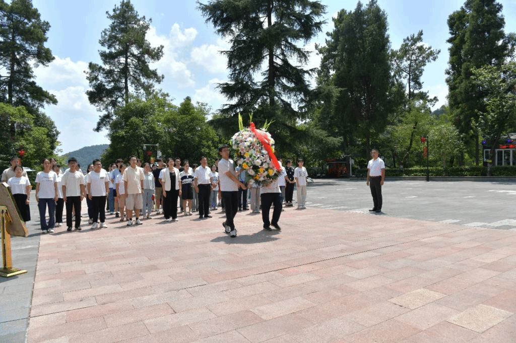 在烈士纪念碑前,由广州医科大学附属第一医院南山学院学生党支部2名学生代表敬献花篮,学校党委书记、校长刘建国及广州医科大学附属第一医院南山学院学生党支部教师代表何少群共同整理挽带。全体同志脱帽肃立、垂首悼念、行礼鞠躬,并向革命先烈们表达深切怀念、致以崇高敬意。随后,学校党委书记、校长刘建国领宣入党誓词,全体同志在声声铿锵有力的宣誓中笃定奋进之力。同时,排队依序瞻仰了红军烈士纪念碑、邓萍烈士墓等地,同志们在墓碑前列队默哀,表达着对革命烈士的敬意和哀思。