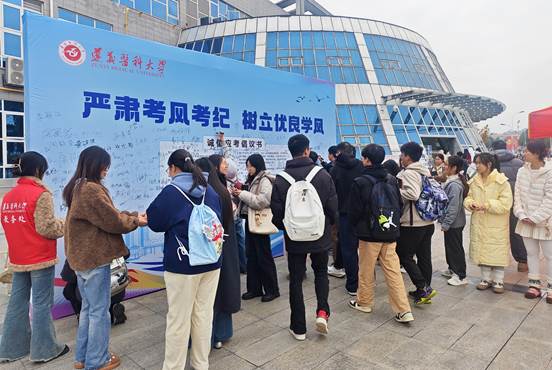 活动在庄重而热烈的氛围中拉开序幕。与会人员面向全体学生发出诚信考试倡议,号召全体同学牢固树立诚信意识,深刻认识诚信考试的重要意义,将诚信内化为价值追求,外化为自觉行动,务必以自身真才实学迎接每一次“考验”。同学们纷纷在印有“严肃考风考纪 树立优良学风”的诚信签名墙前郑重地写下自己的名字。一个个签名,不仅是对个人诚信的庄严承诺,更是对维护校园诚信考试净土、培育优良学风的责任担当。